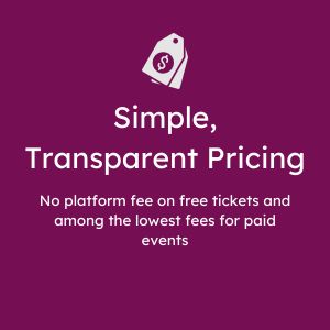 ✔ Platform fee: 1% + $0.55 per paid ticket